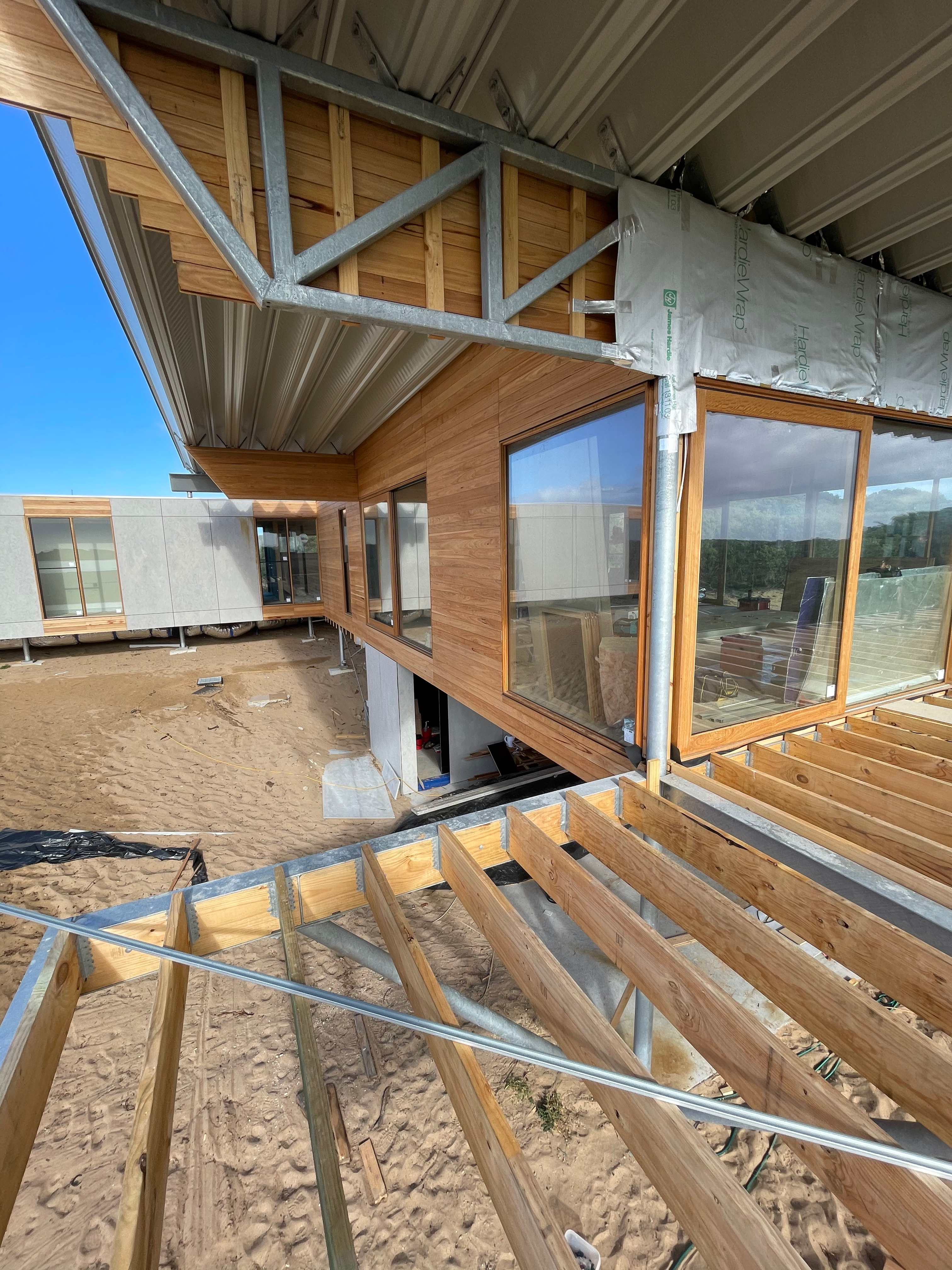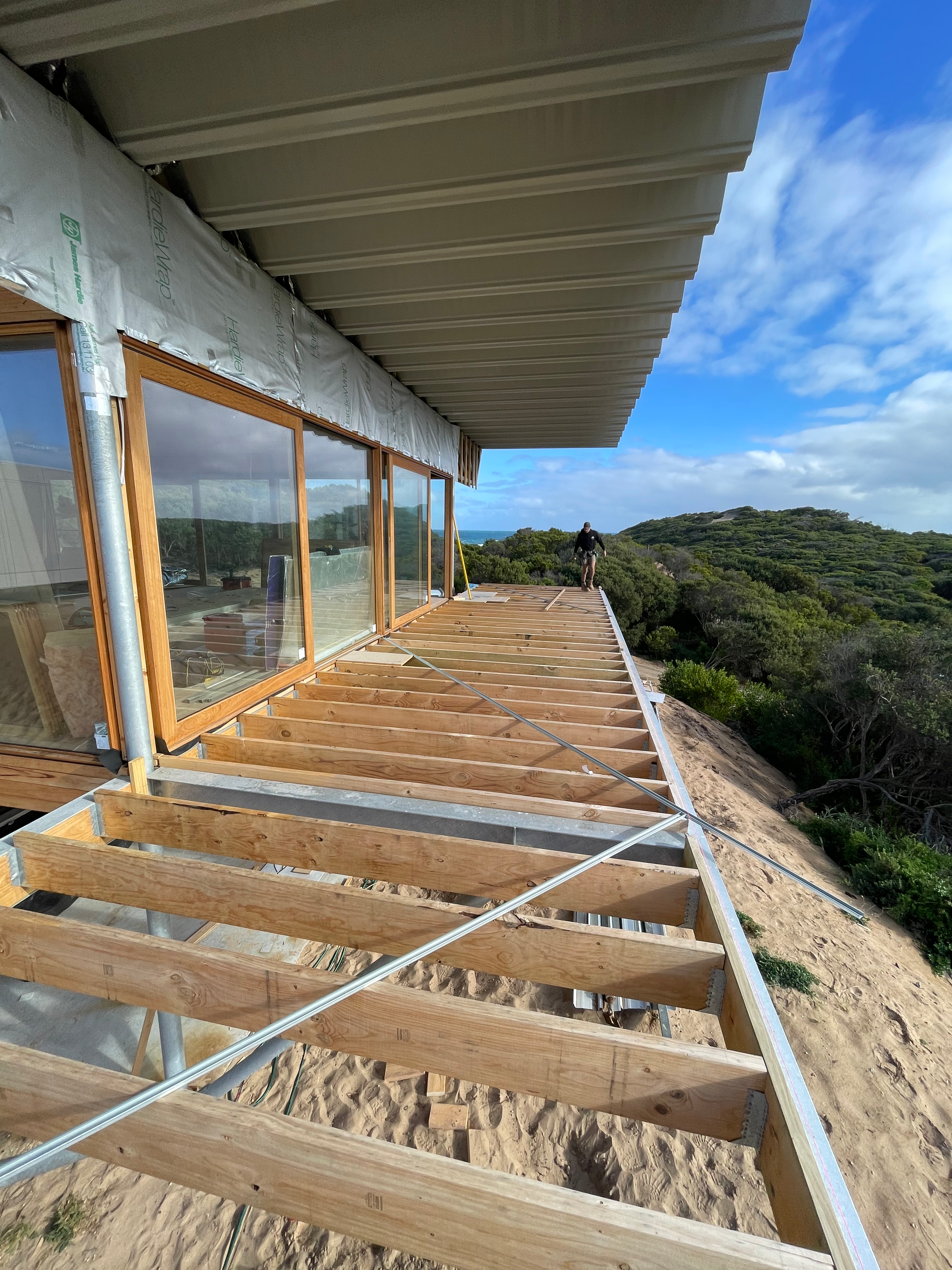 Structural framing and detailed timber work for a high-end residential extension.